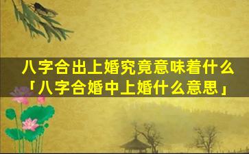 八字 🦋 合出 🌷 上婚的含 🕊 义: