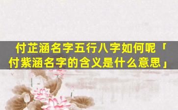 因 🕸 此,"付"若涵这 🌴 个名字 💮 寓意着女子美丽、温,柔且拥有宽宏的气度和涵养。