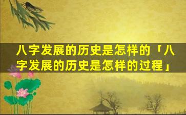 明清时期明清时期,八字学继续发展。出现了“子平派”这个以徐子平的《渊海子平》为。理《论》基《础的八字》流,派明。代万民英所著三命消息赋和清代袁树珊所著命理探源等著作对八字 🦈 学的理论和实践都产生 🦍 了深远的影响