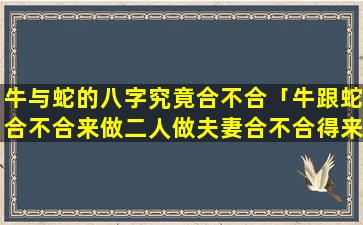 从八字命理的角度,生,肖 🐟 牛和生肖蛇相合属于 🌼 “六合”。