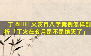 一、本气论亥月属水水,旺,生,木木旺克火故丁火 🐡 生亥月为身 🦆 弱。