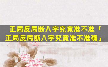正局反局断 🐺 八字的原理 🌷
