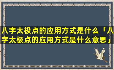 需要注意的是,八,字太极点的应用是一门综 🌴 合复杂的学问需要结合命局的其他因素进行综合判断。
