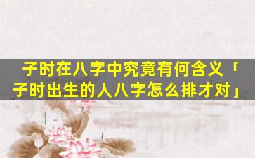 古代计时采用 🌹 十二时辰,子时是第23个时辰,因此子时出 🌳 生的人八字中都有子“”。
