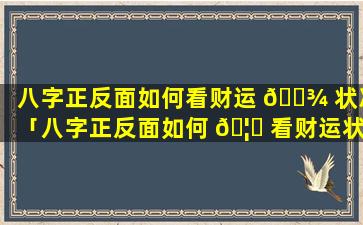 八 🐡 字正反 🦅 面看财运状况图