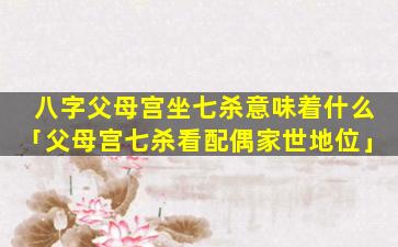 八 🦈 字父母宫坐 🐯 七杀的含义