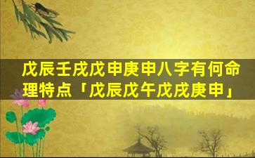 戊辰壬戌戊申庚申八字的命理特 🐋 点: