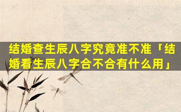 结婚查 🦅 生辰八字 🌻 的传统依据