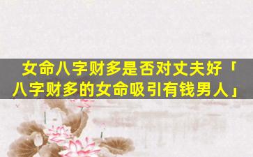 在八字命理中,“财多身弱”的,情,况对于女性是否对丈夫 🐅 好 🦉 需要具体分析其八字格局和运势不能一概而论。
