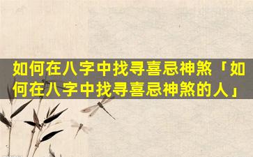 在八字中寻找喜忌 🦆 神煞的人的方法: