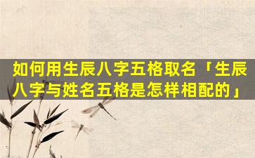 生 🐛 辰八字与姓名五格相配的依据在于两者之间的五行关系。