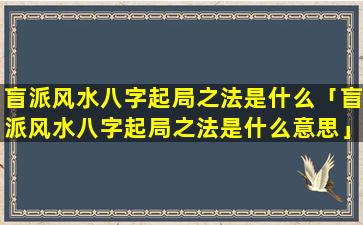 定义盲派风水八字 🐬 起局之法是一种基于八字命理和风水学相结合的传统玄学方法,用于确定风水局的布局和方位。