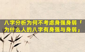 不考虑身强身弱的八字分析是 🐵 不全面的