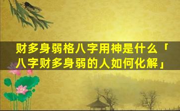 八字财多身弱的人,往,往入不 🌺 敷出难以存财。化解 🕊 方法 🐶 如下: