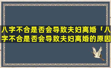 八字不合并 🐝 不能直接导致夫妇离婚 🌾 。