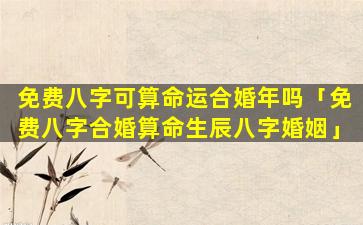 这种说法不准 🐎 确。八 🐬 字算命和合婚年都是需要收 🦟 费的,没。有人会免费提供这些服务