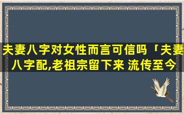 “夫 🐴 妻八字对 🐈 女性而言可信吗 🦍 ”