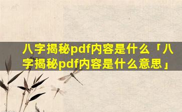“八 🐦 字揭秘pdf内容”是指一本名为八字揭秘 🐒 《的》电子书(PDF格式的内容)。