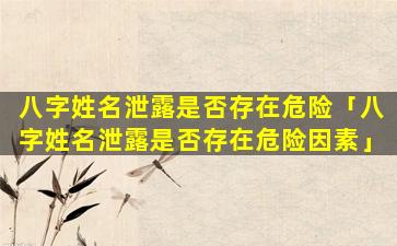 八字姓 🐬 名包含了出生时间姓名、和五行信息,这、些、信息可 🐛 以被用来推算出个人的出生年月日性别籍 🐺 贯等隐私信息。