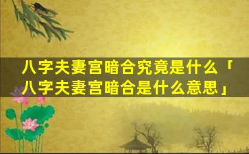 夫 🌸 妻宫暗 🐋 合的含 🐺 义: