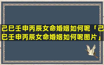 己巳 🐟 壬申丙辰 🌸 女命婚姻分析: