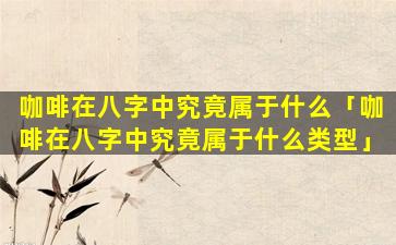 八 🐧 字是一种中国传统命理学,并无明确记载咖啡属于何 🌺 种五元素。