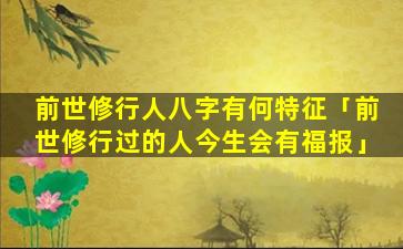 前 🌲 世 🌲 修行人 🍀 的八字特征
