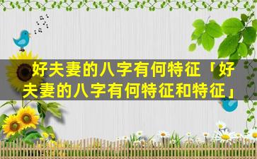 好夫 🐵 妻八 🕊 字 🐞 特征