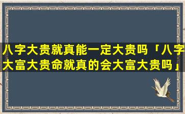 对于“八字大富大贵命就真的 🐒 会大 🌼 富大贵吗的 🍀 ”问题,没有明确的答案。