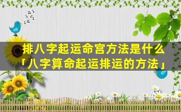 排八字起运命 🌴 宫的方法 🐺