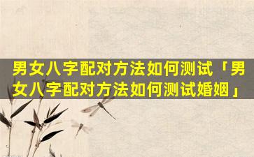 男女八字配 🪴 对测试 🐋 婚姻的方法