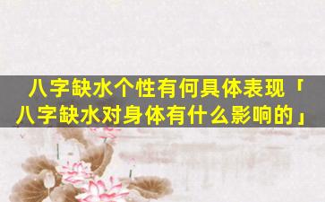 身体 🦍 健康问题:八字缺水的人可能 💮 会比较容易出现肾脏 🐱 、膀、胱皮肤或生殖系统方面的健康问题。