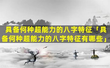具备 🐒 超能力 🐦 的八字特 🐞 征: