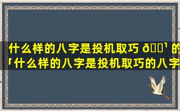 投机 🌹 取巧 🦟 八 🌷 字特征