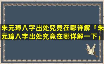 朱元璋 🐟 八字出 🐼 处 💮 详解