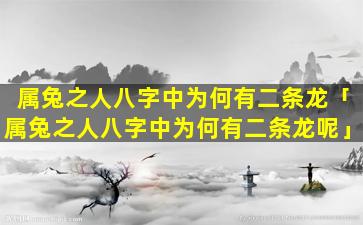 属兔之人 🦅 八字中没有龙,因为兔“在”十,二“生”肖中排第四而龙在十二生肖中排第五。