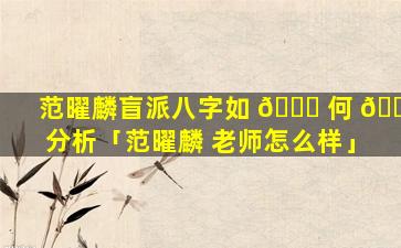 范曜麟是 🐘 台湾著名的命理师,在台湾地区享有较高的知名度。关,于。其准度目前没有权 🌲 威的 🕊 科学研究或统计数据可以证明或反驳其准确性