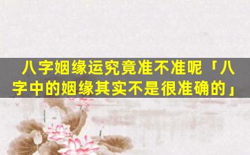 八字算姻缘的准确性是一个备受争议的话题。有些人认为它非常准确,而。另一些人,则。认为它只是猜测对于八字算姻缘的准确性还没有达成共识因为没有科学证据可以 🐎 支持或反驳它