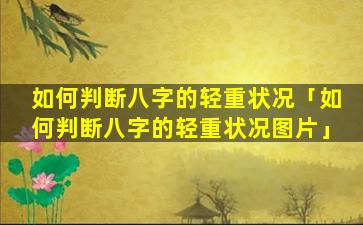 判断八字 🦆 轻重的具 🌴 体方法 🌼