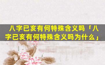 八字中已亥 🐯 的特殊含 🦅 义 🐈 :