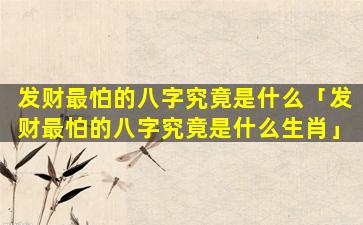 发财最怕的八字 🦆 生肖说法中没有定论,因为生辰八 🦟 字和财运并无直接关联。