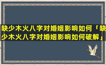 缺少木 🐈 火八字对 🐒 婚姻的 🦋 影响
