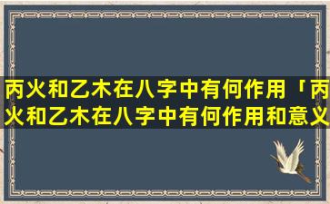 丙火和乙木在八字中 🌼 的作用