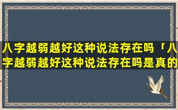 “八字越弱越好 🦟 ”的说法