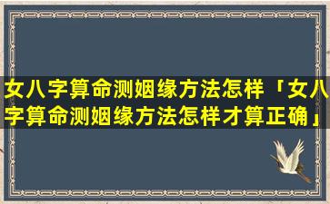 女八字算 🌾 命测姻 🍁 缘方法 🦅