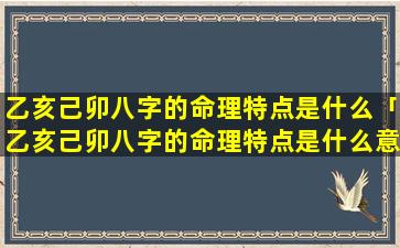 乙亥己卯八 🐈 字的命理特点 🍀 :