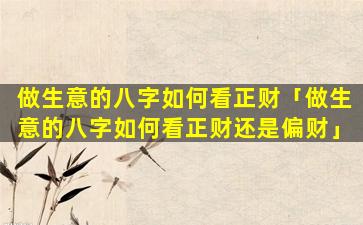 適合 🦟 經商的八字 🕷 命局特徵: