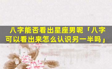 八字不能 🌾 看 ☘ 出星座 🦁 男。