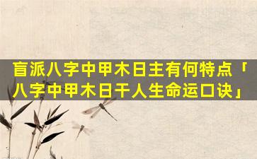 盲派八字中甲木日主 🌾 特点 🐴 :