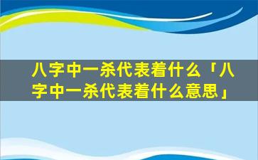 八字中一杀的具 🍁 体含义